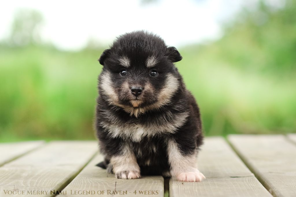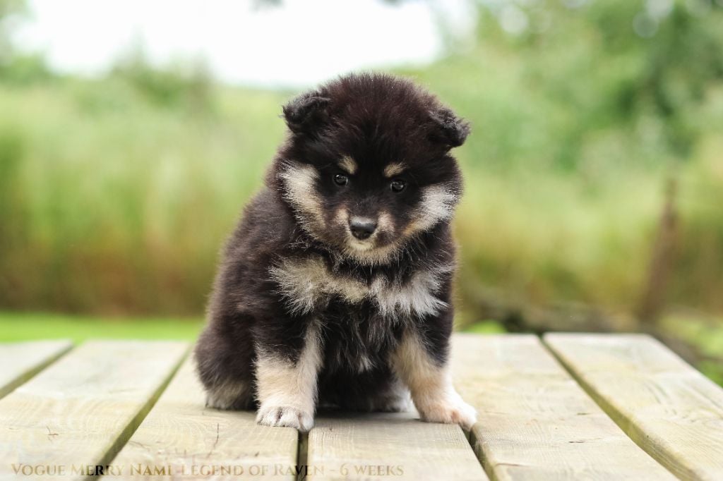 Un petit loup calme et réfléchi qui apprécie les interactions respectueuses. Le plus lourd et grand de la portée, pourtant au milieu de sa fratrie il ne va jamais s'imposer et se fait facilement bousculer mais une fois seul il va grandement savourer ses moments de complicité avec les humains.